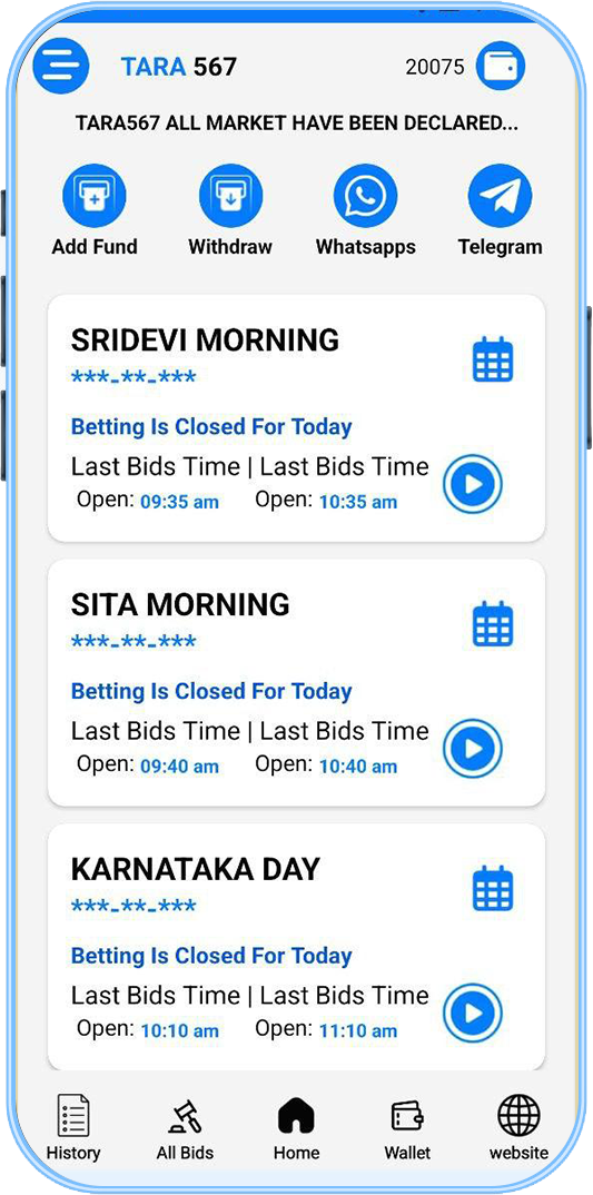 Tara567 Online Matka For Entertainment Purposes Only For the Fastest and Accurate results of markets and bazar Download Our App Tara567 Online Matka is India's No. 1 Online Matka App! It provides all Matka results, including Kalyan, Time Bazar, Milan Day, Milan Night, Rajdhani Night, Kalyan Night, Main Mumbai, and Star Kalyan. We also provide the best Matka results.